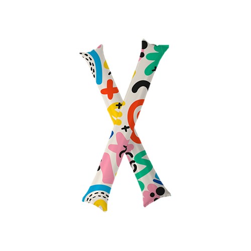 Pair of bastom sticks/clappers in resistant. Reusable and with inflation valve included. Prix par paire . Polybag non personnalisable Matières : PE Dimensions : 60 x 10 cm.