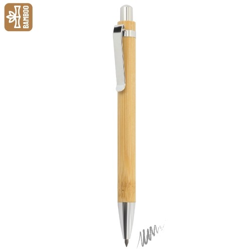 Crayon en bambou avec détails en métal. Pointe graphite pour une écriture sans gaspillage et sans fin.