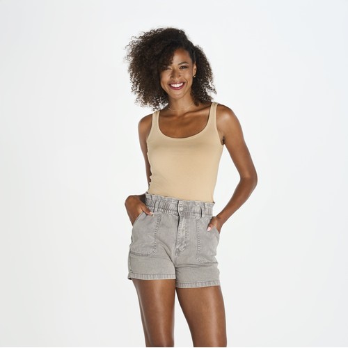 Tee-shirt femme court Tee-shirt court. Dos et avant style nageur. Doubles coutures col, emmanchures et taille. Étiquette détachable. 93% coton/7% polyester.