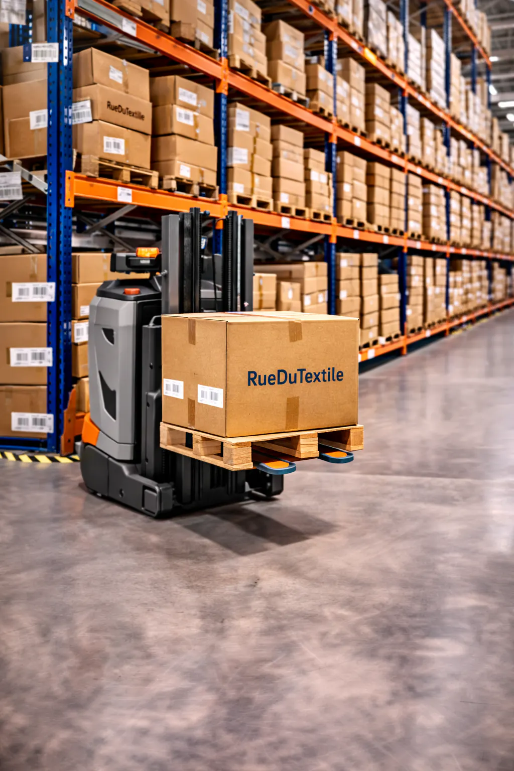 Ruedutextile vous accompagne dans la gestion complète de votre logistique. De la réception des marchandises au stockage, en passant par la préparation des commandes et l’expédition, nous mettons en place des solutions fiables, rapides et adaptées à vos besoins. Grâce à notre expertise et à nos infrastructures, vous gagnez du temps, optimisez vos coûts et assurez à vos clients une livraison efficace et professionnelle.