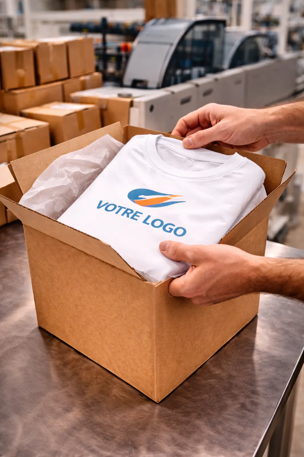 - Réception des objets ou goodies personnalisés, avec contrôle qualité