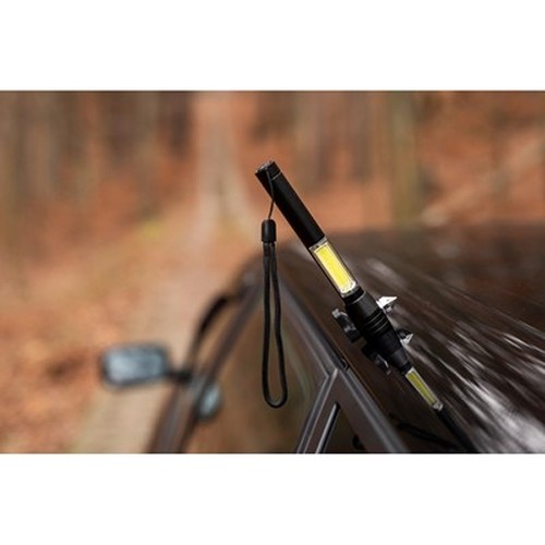 RDT1854762Lampe de poche de sécurité avec 1 lumière LED COB, 100 lumens, dotée d'un aimant pour la fixation, d'un coupe-ceinture et d'un marteau de sécurité, comprend une poignée pour un transport facile, produit en métal