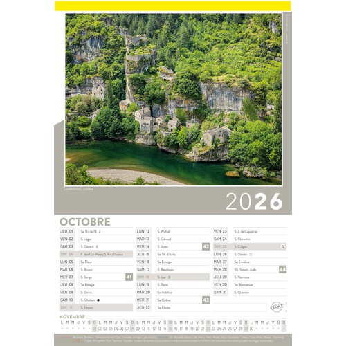 RDT1867025Support : plateau carton couché 400 g Grille : mensuelle - langue : français - fêtes - n°semaine - lunaisons - congés scolaires