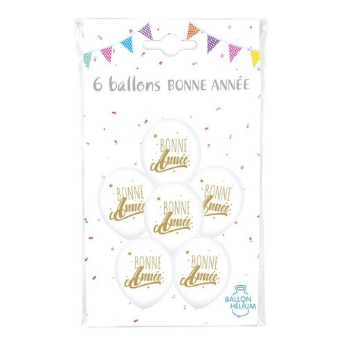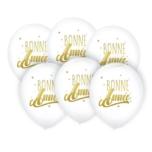 6 Ballons Bonne Année blanc/or 30cm
