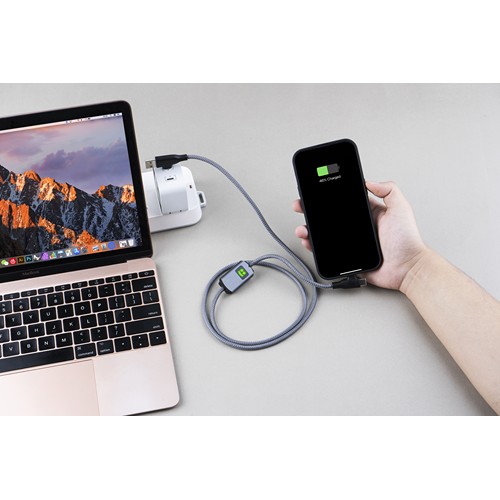 RDT3312544Câble de charge rapide de 100W Voici Allure, le câble de charge rapide de 100W d'1 mètre de long de notre nouvelle collection en aluminium recyclé certifié GRS, qui s'adapte à tous les environnements. Avec sa compatibilité CarPlay, et ses 100W il vous permettra de charger tous vos appareils, même vos ordinateurs portables !