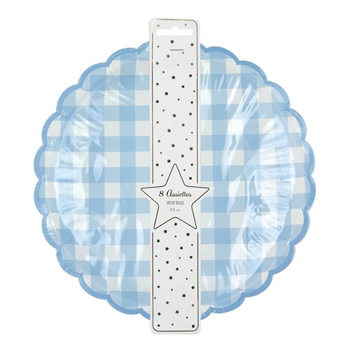ASSIETTES FESTONNEES VICHY BLEU 23CM X 8
