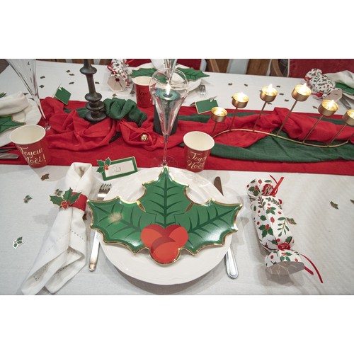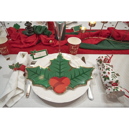 RDT2398930ASSIETTES HOUX 23CM X 8 Jolies assiettes 350gr en forme de houx avec un galon or