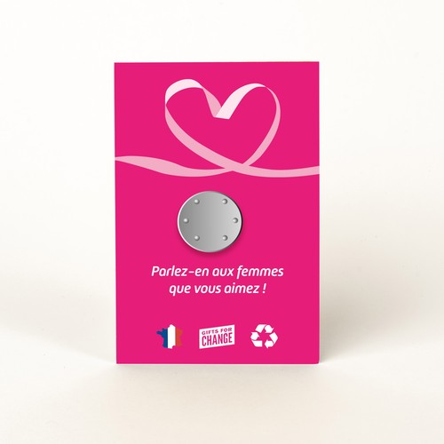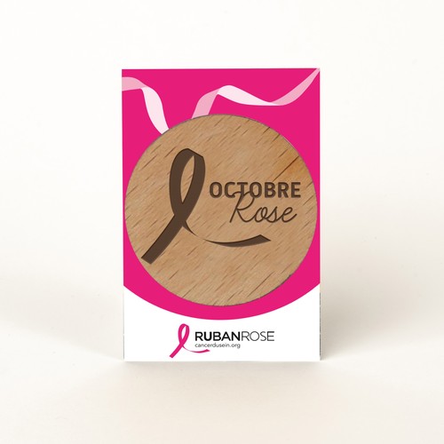 RDT2100337Badge en bois diamètre 50mm, attache aimant, monté sur une carte. Le badge et la carte sont personnalisables.
