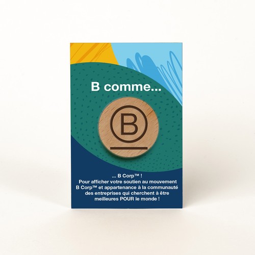RDT2100342Badge en bois diamètre 30mm, attache aimant, monté sur une carte. Le badge et la carte sont personnalisables.