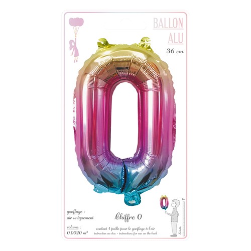 BALLON MYLAR CHIFFRE 0 IRISE PASTEL 36CM