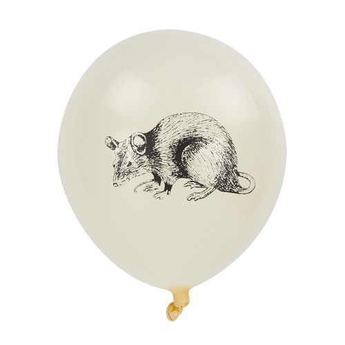 RDT3072407BALLONS DE BAUDRUCHE CABINET DE CURIOSITÉS X 6 BALLONS BEIGES ASSORTIS AVEC MOTIFS CRANE - RAT - CORBEAU -