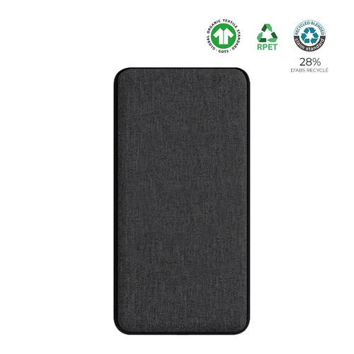 RDT2902277Batterie de secours en ABS recyclé & chanvre organique. En associant le chanvre organique certifié GOTS et le plastique RPET issu de la récupération des bouteilles en plastique, cette batterie de secours induction 8000mAh joue clairement la carte de la fabrication recyclée.