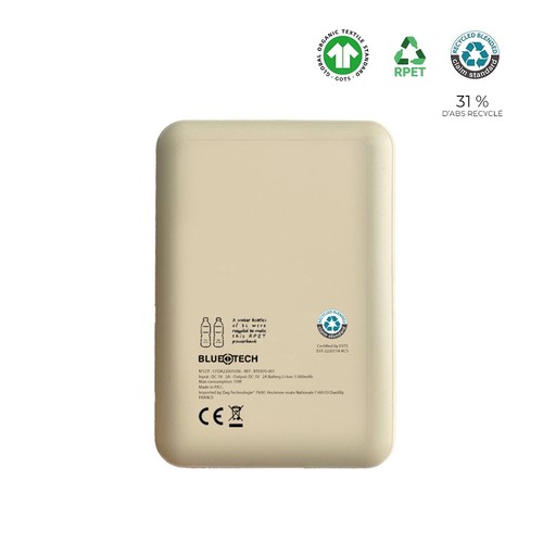 Batterie de secours RPET & chanvre organique 5 000mAh - BLUETECH