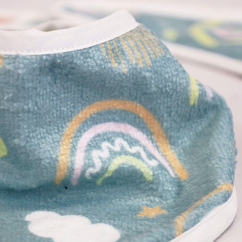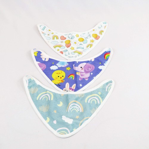 RDT3086769Fait de coton doux et absorbant, idéal pour la peau délicate du bébé. Le tissu éponge offre une excellente absorption, aidant à garder le bébé au sec et confortable pendant les repas. Le design triangulaire est moderne et pratique, offrant une couverture adéquate pour protéger les vêtements du bébé et facilite également l´ajustement autour du cou du bébé. Printing price : included