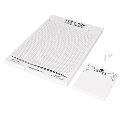BLOC-NOTE ENCOLLE - MAXI 210 x 297 mm - 30 FEUILLES 80g OFFSET - IMPRESSION RECTO NOIR
