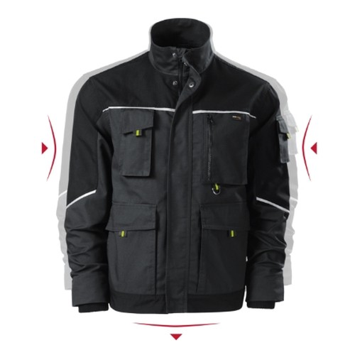 RDT2384358Blouson de travail homme Ranger fermeture éclair intégrale moulée avec protection menton et rabat, 7 poches multifonctionnelles, poches à soufflet avec rabat et poches passepoilées zippées, poche sur la manche, poignets en côte avec 3 % d'élasthanne, ourlet inférieur réglable avec boutons-pression sur les côtés, D-ring métalique et mousqueton pour clés et cartes d'identité, double couture pour une durabilité accrue, éléments rétro réfléchissants, matériau très résistant en couleur 01