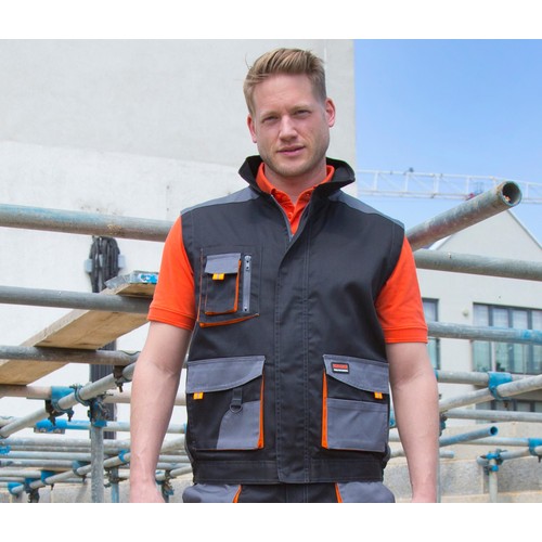 RDT3227990Bodywarmer de travail léger et non doublé. Déperlant, respirant, coupe-vent. Fermeture grand zip avec rabat de protection extérieur fermé par boutons pressions. Col montant. Poches multi-usage à soufflet avec languettes réfléchissantes. Taille partiellement élastiquée. Poignets ajustable par bouton pression. Coupe ample. Modèle unisexe.