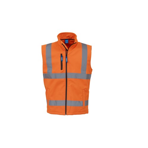 RDT3269860Bodywarmer Softshell 3 couches. Imperméable : 8000mm. Intérieur en micropolaire. 2 bandes verticales et 2 bandes horizontales réfléchissantes cousues de 5cm. Poches latérales. Conforme à la spécification EN ISO20471:2013 Class 2. Zips imperméables.