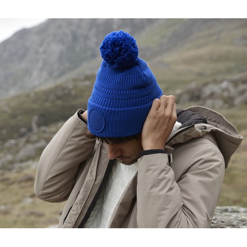 RDT3337250Maille tressée façon panier. Double épaisseur. Grand pompon assorti. Doublure en micropolaire pour plus de confort et de chaleur. Avec rabat pour un marquage optimal. Fabriqué à partir de 100 % de polyester recyclé certifié GRS (certification Control Union CU811033).