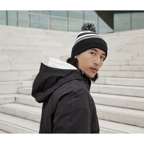 RDT3293447Certifié polyester recyclé. Contient 50% de polyester recyclé. Doublé. Pompon bicolore. Avec revers. Étiquette détachable. Le polyester recyclé utilisé correspond à 8 bouteille(s) de 330ml.