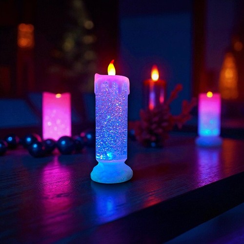 Bougie LED tourbillon paillettes neige - 24 x 8.5 cm nécessite 3 piles AAA