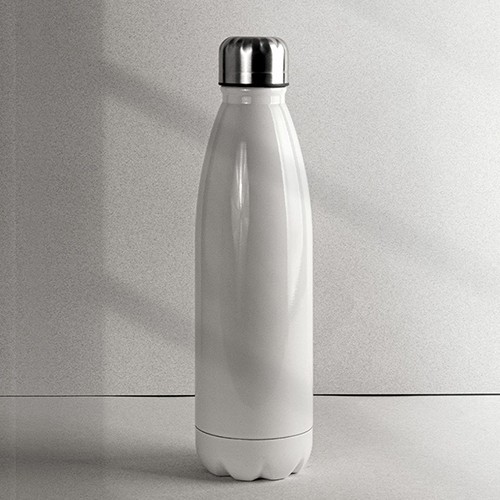 RDT3017515Bouteille blanche en acier inoxydable recyclé de 750 ml. avec finition particulière pour le marquage en sublimation. Bouchon argenté. Emballage individuel. Matières : Acier inoxydable recyclé