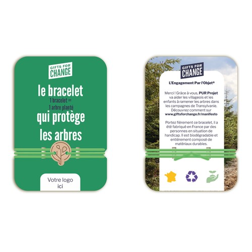 RDT2100270Bracelet en bois made in France permettant de lever des fonds pour contribuer à la reforestation. Design déjà établi, seule une zone de la carte est personnalisable.