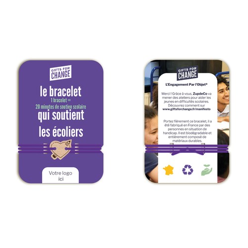 RDT2100254Bracelet en bois made in France permettant de lever des fonds pour contribuer au soutien scolaire de jeunes en difficultés. Design déjà établi, seule une zone de la carte est personnalisable.