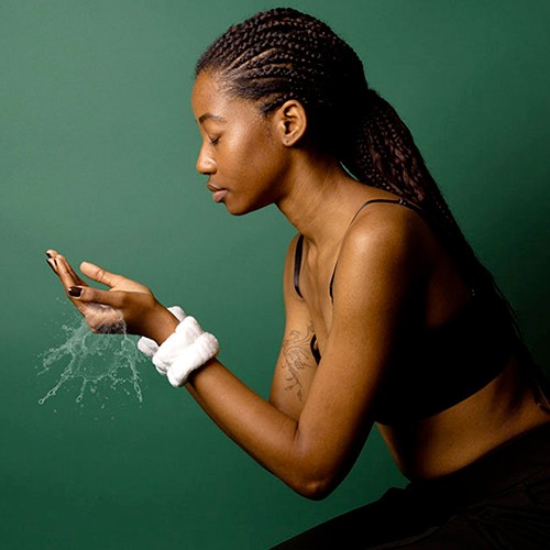 RDT3017205Paire de poignets anti-goutte en flanelle de polyester, pour éviter de se mouiller en se lavant le visage. Avec étiquette pratique pour la personnalisation. Matières : Flanelle de polyester