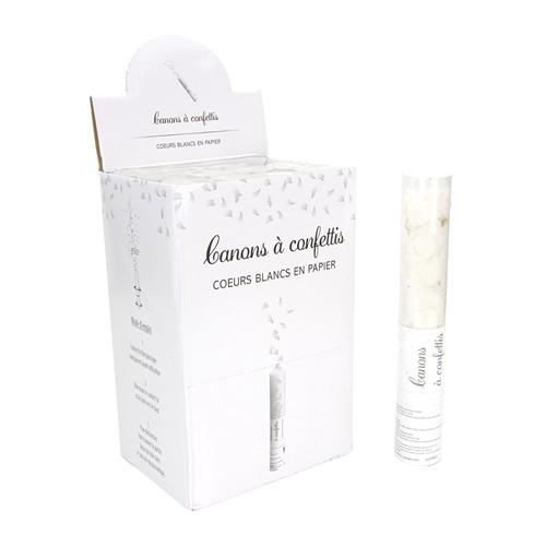 CANON A CONFETTI COEUR BLANC TUBE TRANSPARENT 25CM