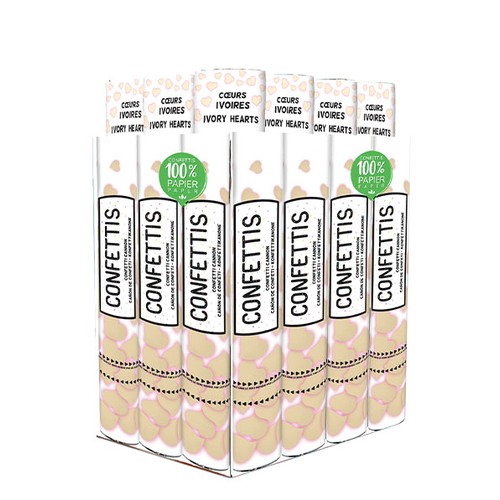 Canon à confettis 40cm Papier Cœurs Ivoires