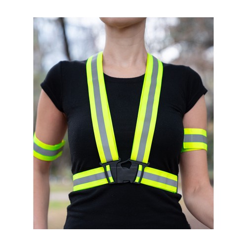 RDT3298432Ceinture élastiquée, fluorescente et réfléchissante. Parfaite pour les activités extérieures : jogging, rando, vélo.. Taille et bretelles ajustables. Fermeture facile à l'avant. 2 bandes réfléchissantes en plus pour les bras ou les jambes.