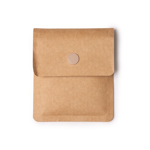 RDT2879514Cendrier en papier recyclé avec intérieur en aluminium ignifuge. Fermeture sécurisée avec un bouton. Matières : Papier recyclé/aluminium.