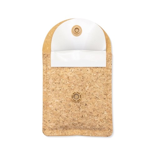 RDT3017678Cendrier en liège avec intérieur en aluminium ignifuge. Fermeture de sécurité avec bouton. Matières : Liègand/aluminium