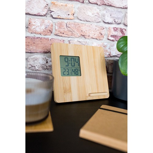 Chargeur sans fil en bambou 10W, station météo | Kahele