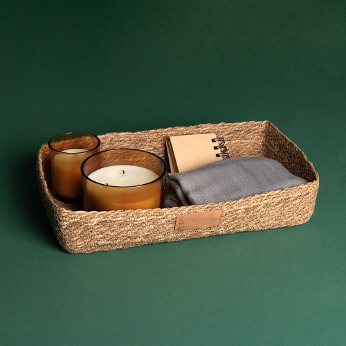 RDT3017724Panier fabriqué en algues marines tressées, avec étiquette personnalisable en PU. Matières : Algues, PU