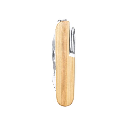 RDT2086679Couteau Multi-Usages avec 9 fonctions. Il comprend couteau, ouvre-couteaux, ciseaux, chaux, tournevis, tire-bouchon et autres fonctions. Ruban de transport en cuir et présenté dans une boîte individuelle Matières : Acier inoxydable, Bambou