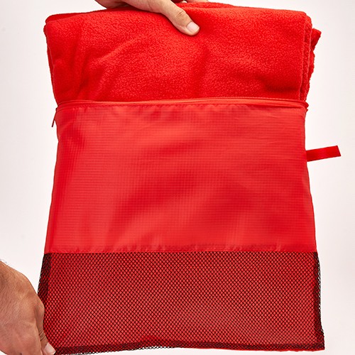 RDT2084723Couverture polaire 200 g / m2 avec housse assortie. Traitement anti-pilling d'un côté. Couverture rectangulaire en tissu polyester Oxford et maille, avec fermeture éclair de la même couleur. Matières : Polyester