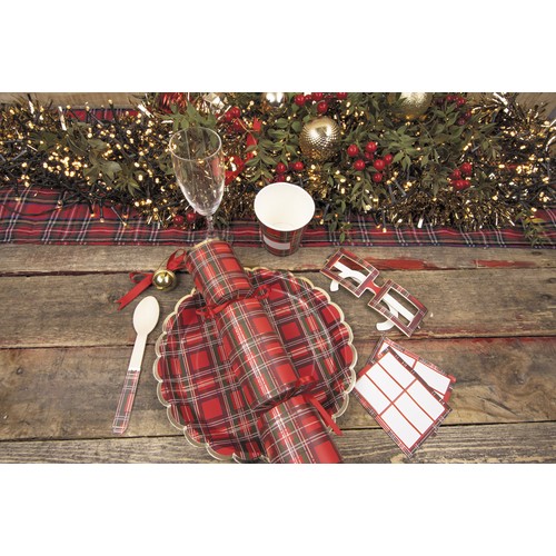 RDT2399520CRACKERS TARTAN X5 Jolis crackers de Noël en tartan, à utiliser en déco sur une table pour animer votre fête