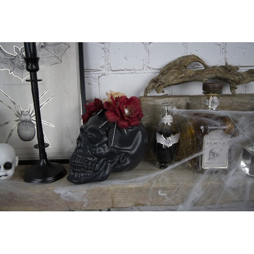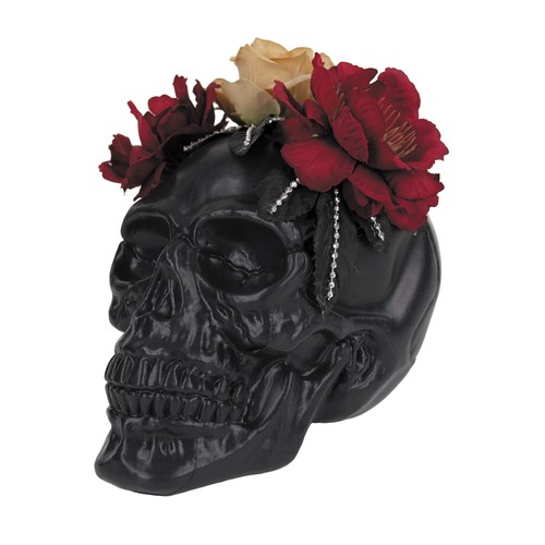 CRANE SQUELETTE NOIR AVEC FLEURS