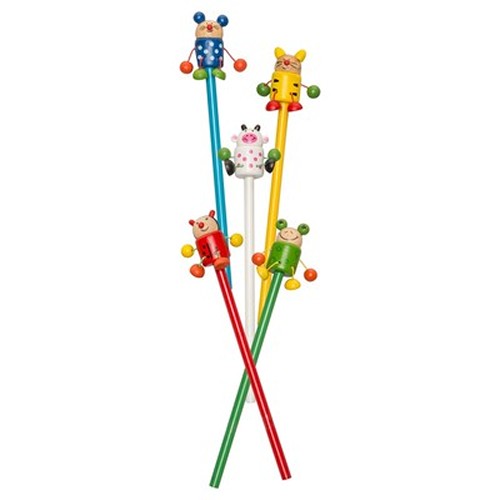 RDT1858473Crayon « animal » avec tige colorée, la pointe n'est pas taillée, existe en 5 motifs différents vendus au hasard : tigre, coccinelle, souris, grenouille et vache, produit en bois et nylon