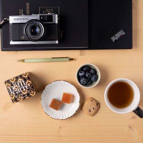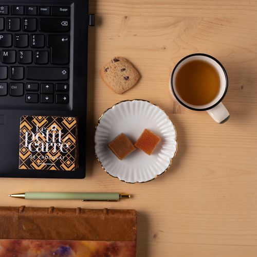 RDT3209052Cube en papier FSC 300g contenant 1 sablé, 1 pâte de fruits et 1 caramel.