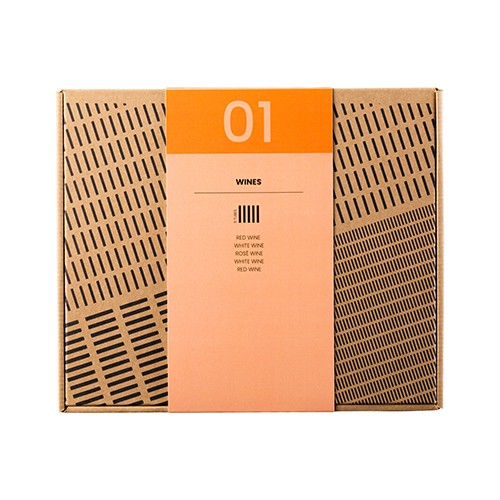 RDT2879842Dégustation de vins en coffret cadeau artisanal avec 5 tubes en verre de 100 ml de vins du Domaine de Rombeau. La dégustation comprend un rosé (12,5% vol), 2 rouges (14,5% vol) et 2 blancs (13,5% vol). Dimensions : 30 x 26 x 4,2 cm.