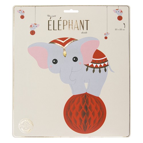 RDT3343766ELEPHANT ALVEOLE VINTAGE CIRCUS DIMENSION : 25CMX22.5CM - DIAMETRE DE LA BOULE ALVEOLEE 10CM MATIÈRE : PAPIER DE SOIE 28GR ET PAPIER PELLICULE 300GR