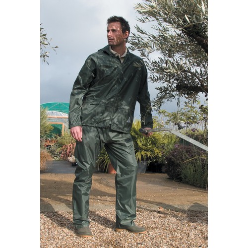 RDT3248917Imperméable à 2 000mm. Coupe-vent. Ensemble pantalon veste avec sac de rangement à fermeture. Veste grand zip à capuche avec cordon de serrage, 2 poches. Poignets tempête intérieurs et cordon de serrage à la taille. Pantalon avec taille élastiquée, 2 poches et chevilles à fermeture pression. Dos ventilé en maille et triangle de sécurité 3M SCOTCHLITE™.