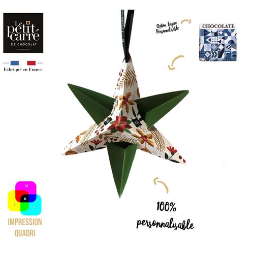 Etoile de Noël contenant un carré 5g de chocolat noir 71% de cacao Bio*