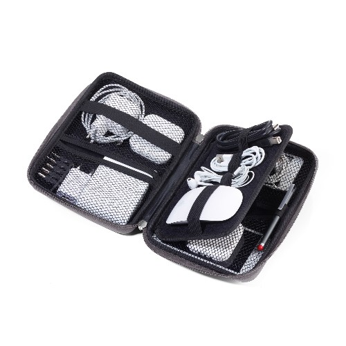 RDT3209645Étui de rangement avec fermeture à glissière, 3 poches intérieures, 6 boucles à bande élastique, intercalaire (intérieur), similicuir, velours, gris/noire