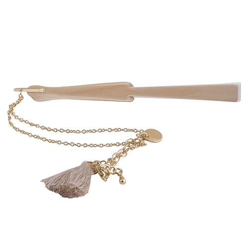 RDT2878979Eventail de 23 cm avec baleines en bois et pavé en polyester. Décoré d'une lanière et d'un pompon. Livré dans une boîte en carton marron Matières : Bois/polyester