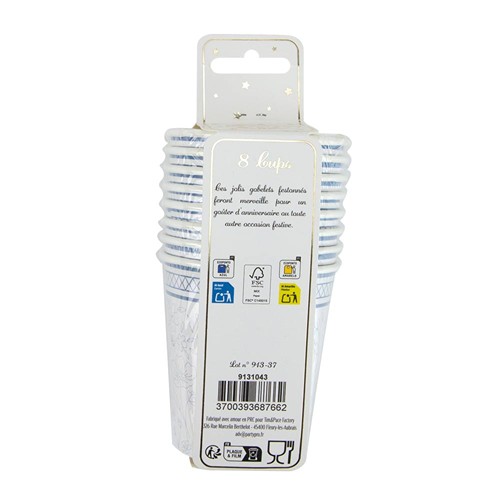 RDT3343675GOBELETS 200ML "FLEUR BLEUE" X 8 Jolis gobelets 300gr avec un motif floral vintage et un galon bleu façon porcelaine de Limoges. Parfaits pour une décoration de table vintage très "fleur bleue".