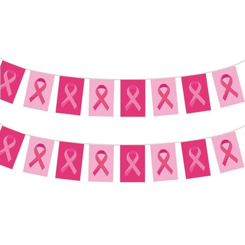 Guirlande 20 fanions tissu OCTOBRE ROSE fanion 20x30 recto verso longueur 10m